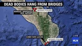 Six bodies found hanged from bridges near Mexican tourist resort ... dispute between the Sinaloa and Jalisco New Generation drug cartels. Mexico's notoriously ruthless drug gangs have regularly hanged victims from bridges and highway overpasses in places like Mexico City, but it is unusual for bodies to be seen near tourist areas. In August, the US State Department ...